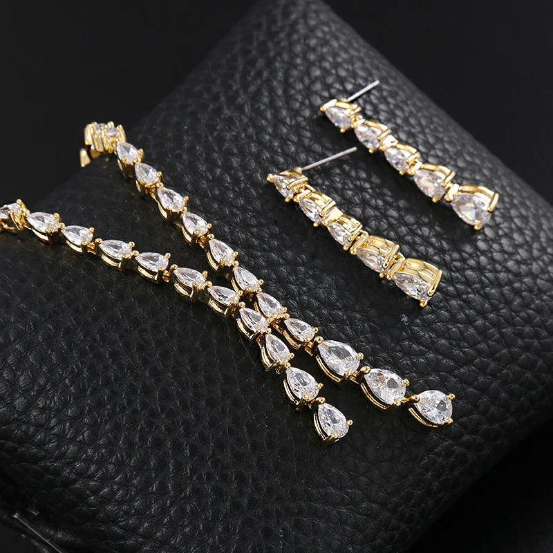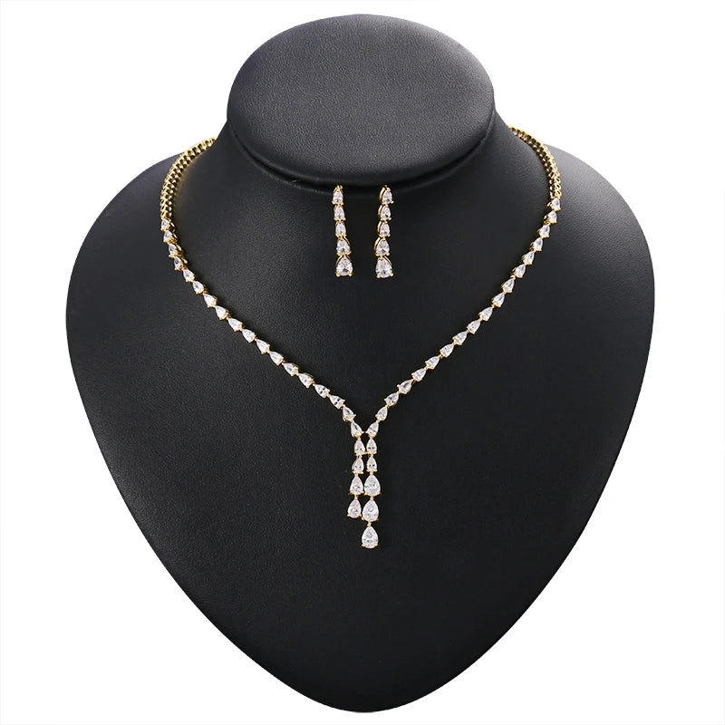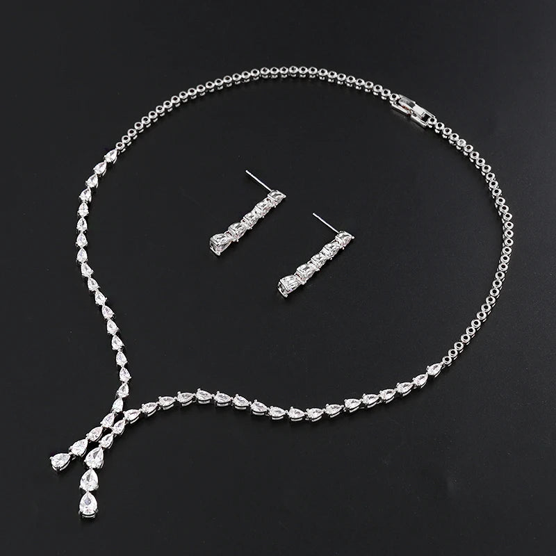 Make your wedding unforgettable with the Teardrop Cubic Zirconia Necklace and Earring Set – designed to add a touch of sparkle and sophistication to your bridal look.